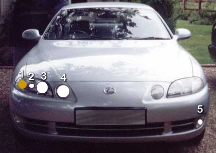 The Projector Dipped beam is a 55W Halogen unit, producing about 1100 lumen (when it is new) but as with all things it becomes jaded over time, down to about 950 lumen and the temperature of the light drops from 3200K down to 2800K. In my original 1992 model, my replacements are 51W high pressure Xenon units producing 1300 lumen at 13.8V at 3800K they are, to our eyes, twice as bright as my originals. These lamps have a little silvered cap on its' end and it is this cap that ensures you don't have light 'break-over' which causes a fuzzy cut-off and the failing of an MOT. The cap is not on any 'J' type bulbs I have seen, you cannot easily cap them yourself. The projector type lamp unit is VERY sensitive to the limit the lamp projects forward, the cap stops it from over reaching this point. Another alternative are the PIAA halogen dipped beams, again available here in the club shop. Not cheap but producing an illumination equivalent of 110 watts, and therefore doubling the effectiveness of the standard Soarer bulbs.